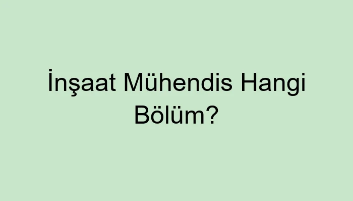 İnşaat Mühendis Hangi Bölüm?