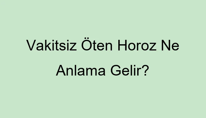Vakitsiz Öten Horoz Ne Anlama Gelir?