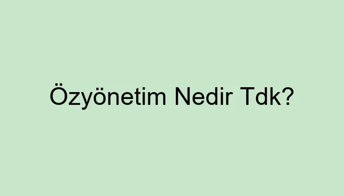 Özyönetim Nedir Tdk?