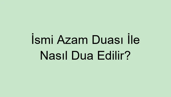 İsmi Azam Duası İle Nasıl Dua Edilir?