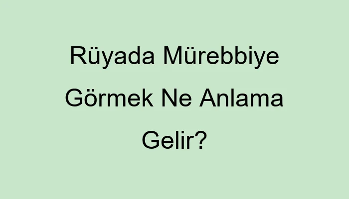 Rüyada Mürebbiye Görmek Ne Anlama Gelir?