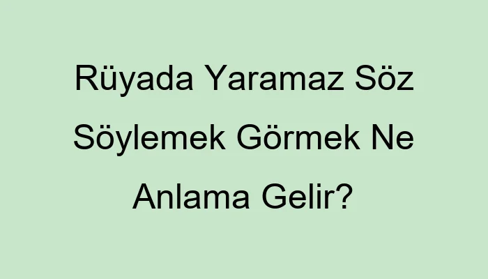 Rüyada Yaramaz Söz Söylemek Görmek Ne Anlama Gelir?