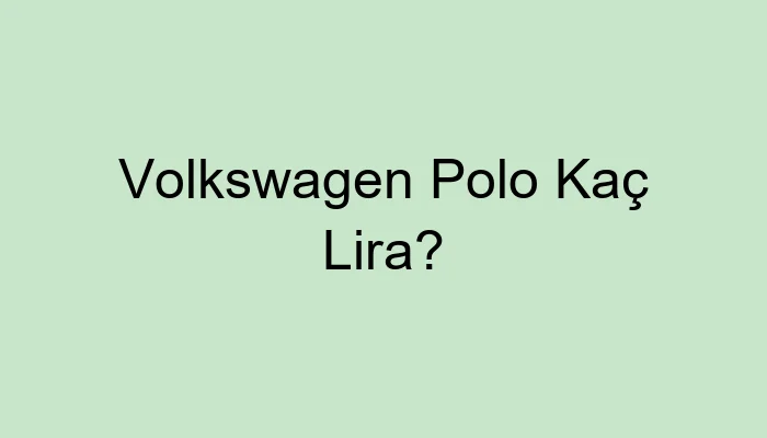 Volkswagen Polo Kaç Lira?