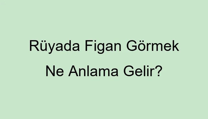 Rüyada Figan Görmek Ne Anlama Gelir?