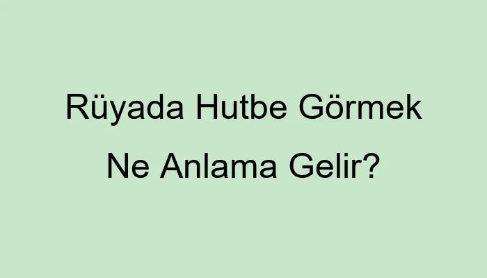 - Rüyada Hutbe Görmek Ne Anlama Gelir?
