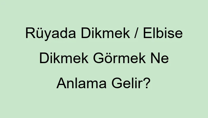 Rüyada Dikmek / Elbise Dikmek Görmek Ne Anlama Gelir?