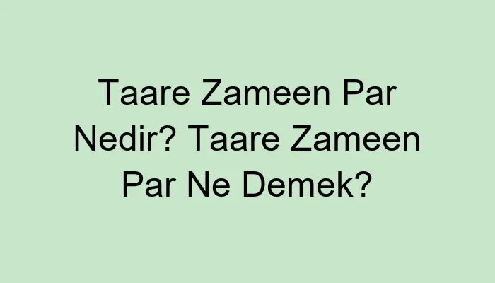 - Taare Zameen Par Nedir? Taare Zameen Par Ne Demek?