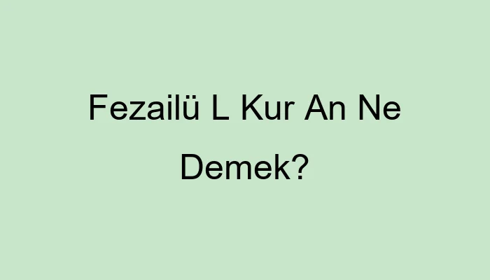 Fezailü L Kur An Ne Demek?