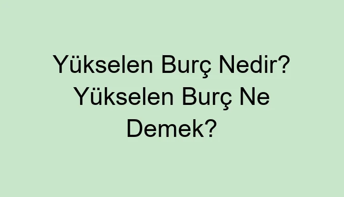 - Yükselen Burç Nedir? Yükselen Burç Ne Demek?